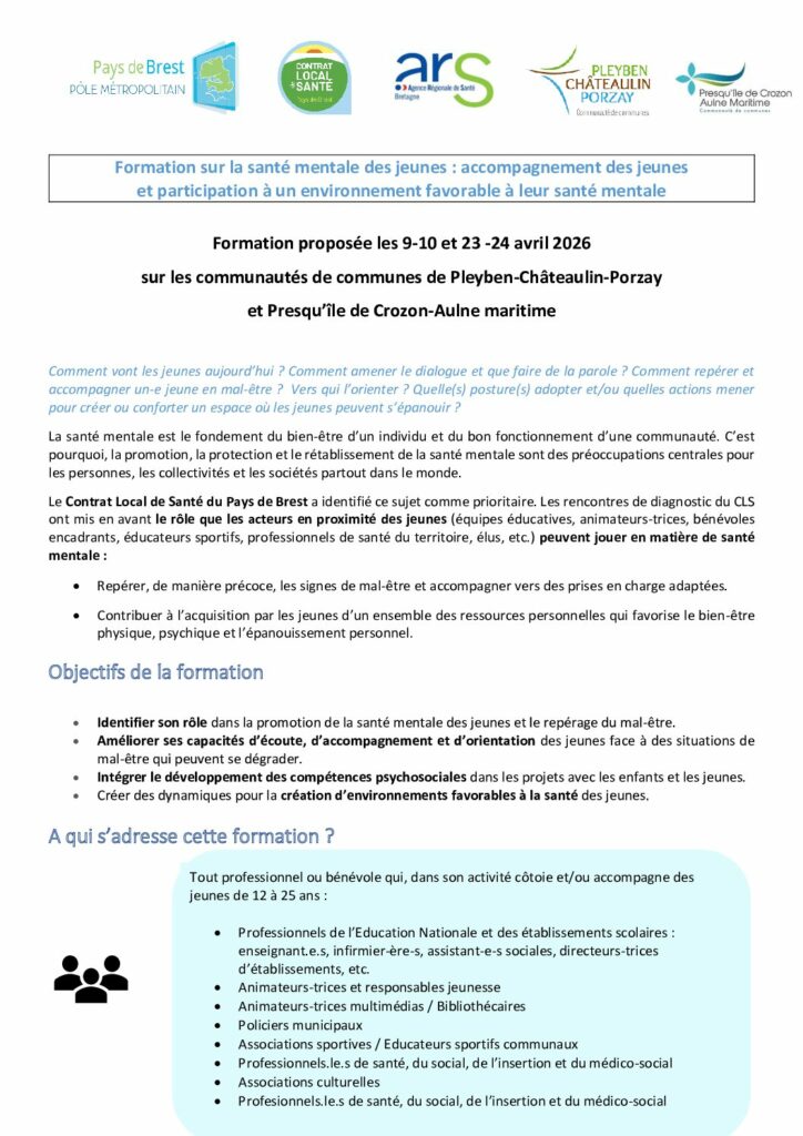 Formation santé mentale des jeunes 9-10 avril et 23-24 avril