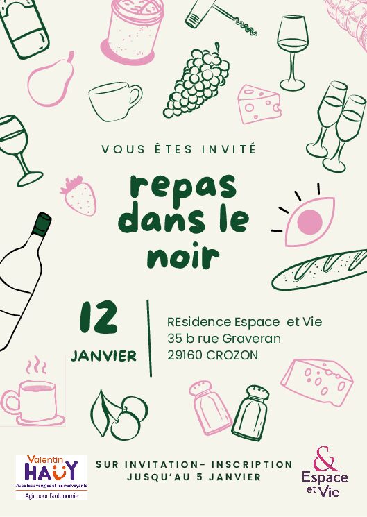 Repas dans le noir le lundi 12 janvier à Espace et Vie à 19h