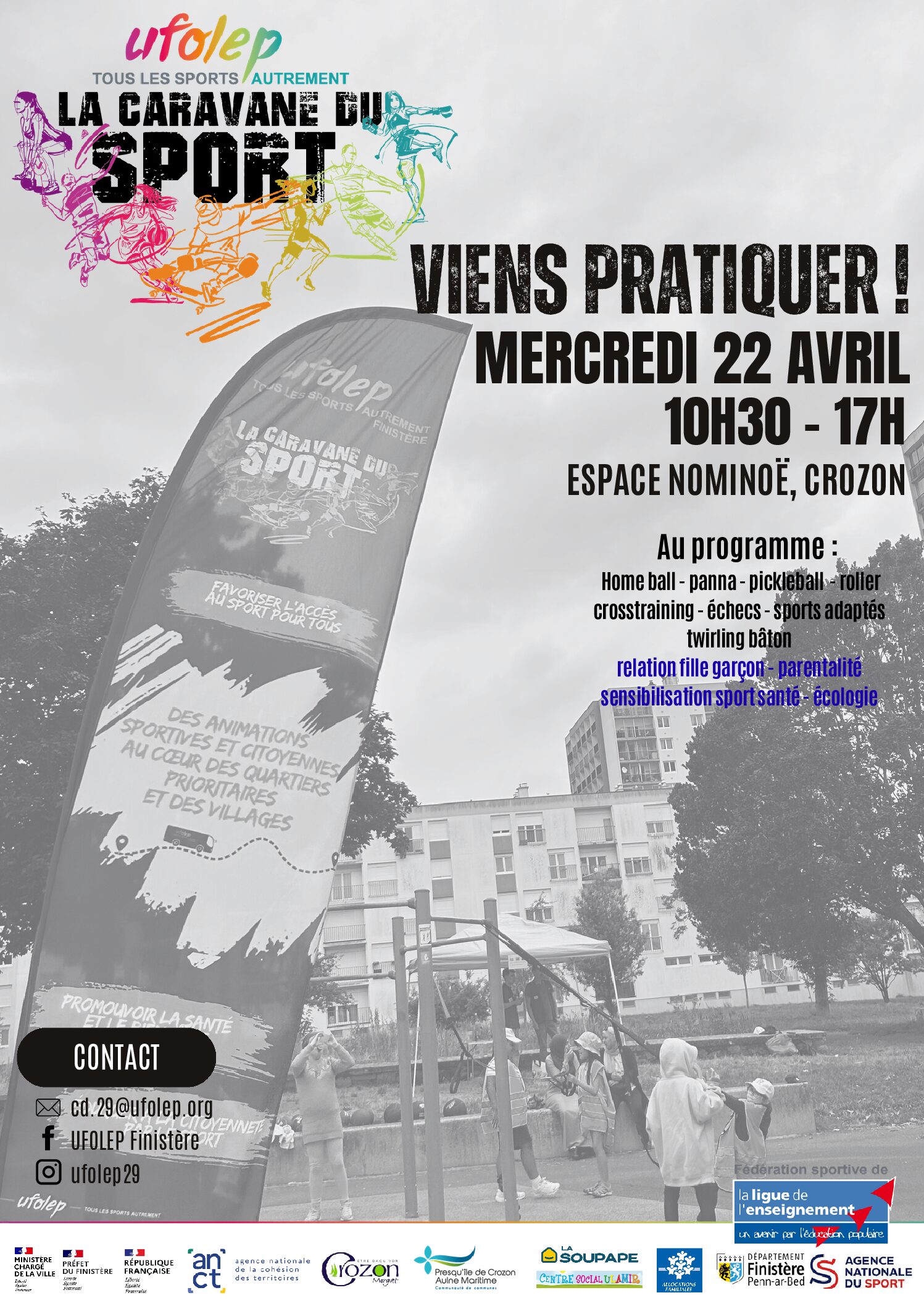 Journée Caravane du Sport « relation fille garçon, parentalité et sensibilisation sport santé – écologie de 10h30 à 17h + Ajouter à mon Agenda Google + iCal / Outlook export 00 jours 00 heures 00 minutes 00 secondes Date Avr 22 2026 Heure 10h30 - 17h00 Partagez cet événement